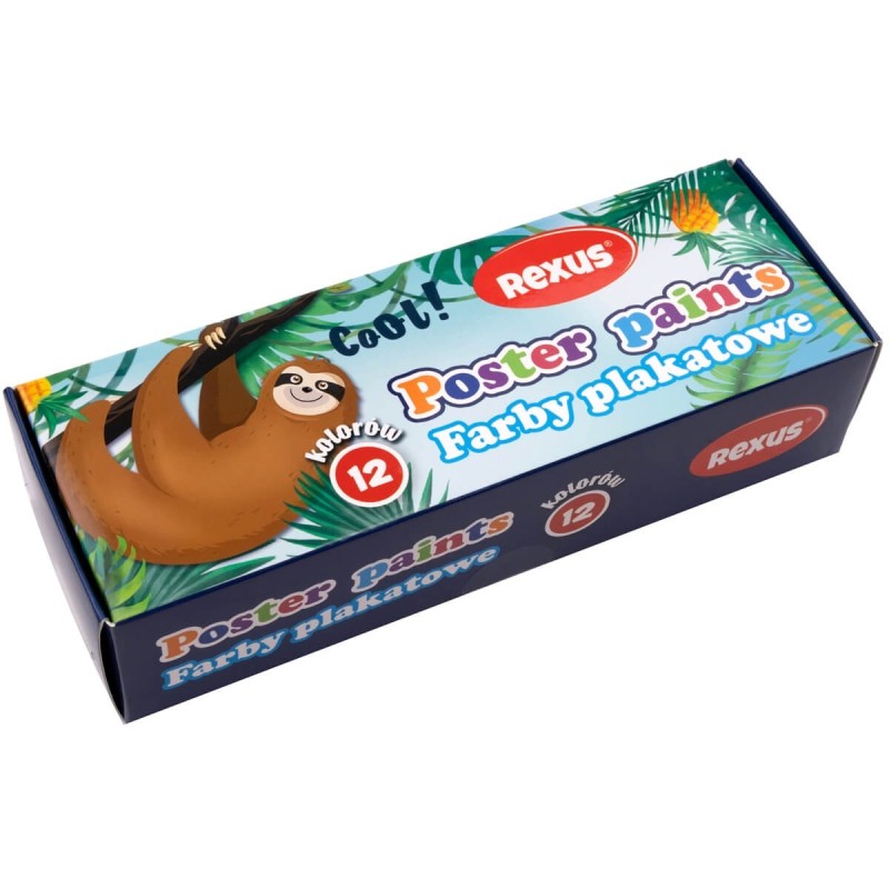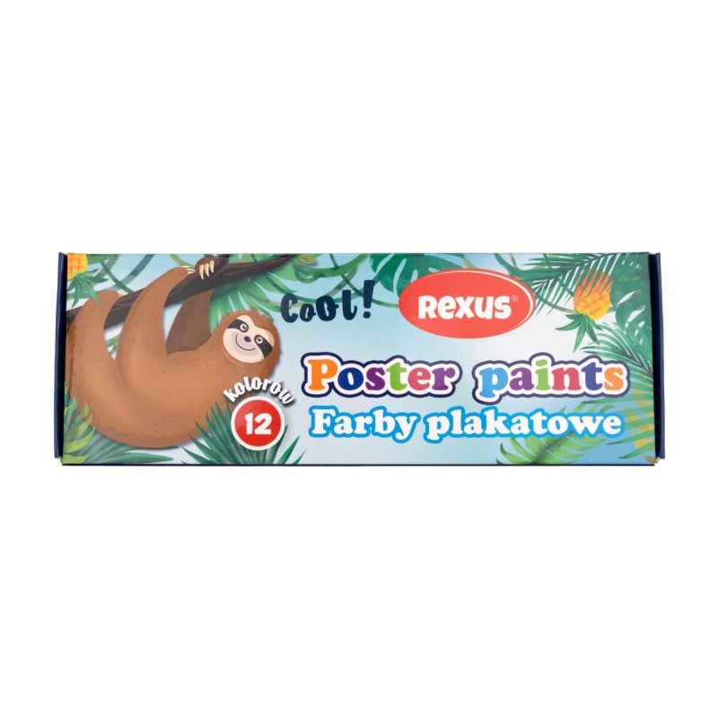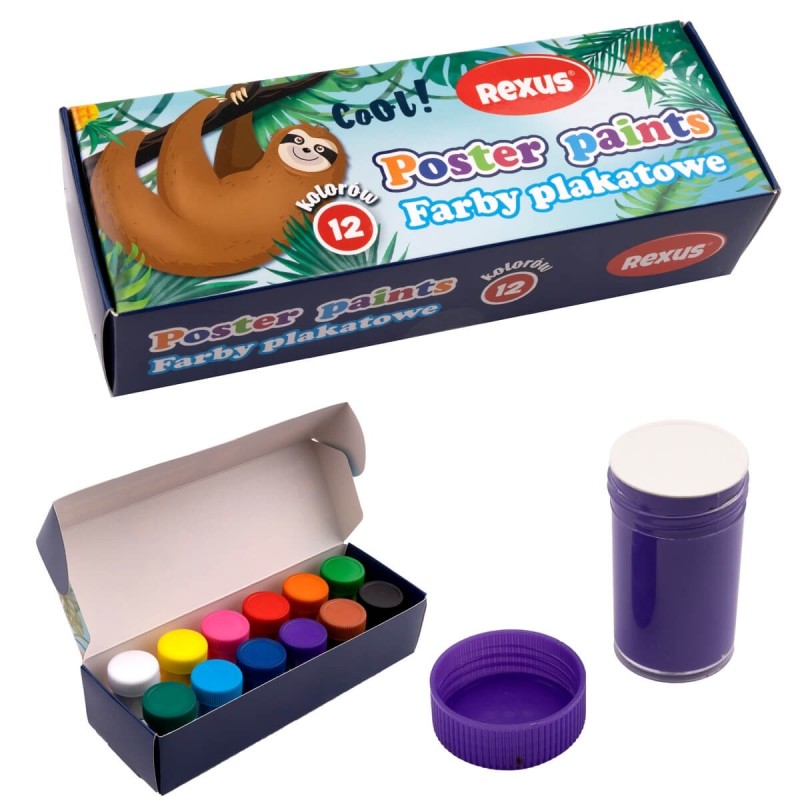 Farby plakatowe 12 kolorów x 20 ml zabezpieczone przed wysychaniem REXUS Beniamin