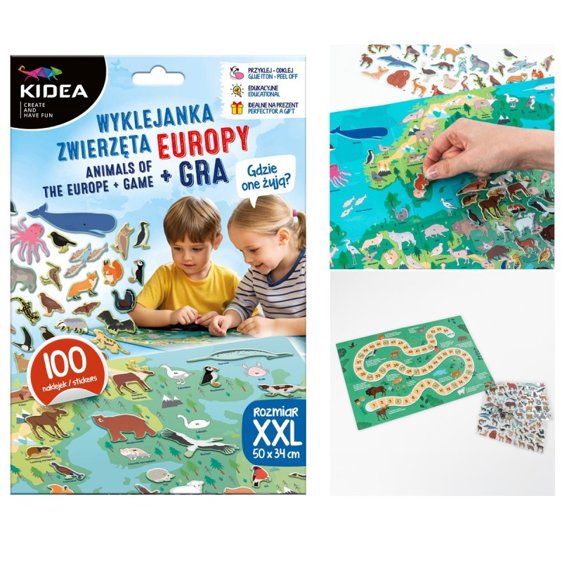 Wyklejanka KIDEA ZWIERZĘTA EUROPY Gdzie one żyją? + gra planszowa