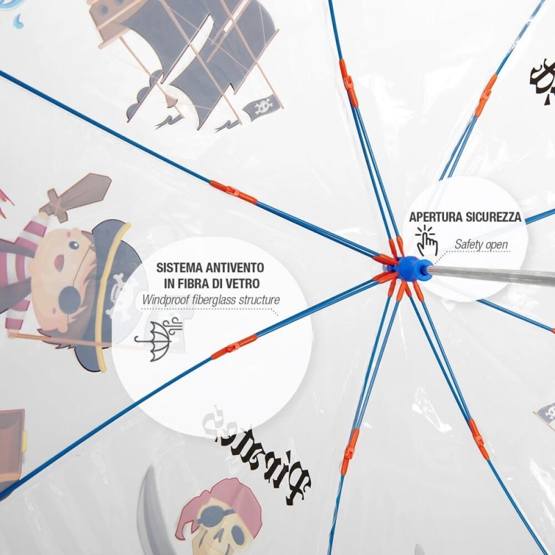 Przezroczysta, bezpieczna, wytrzymała parasolka dziecięca włoskiej firmy PERLETTI.