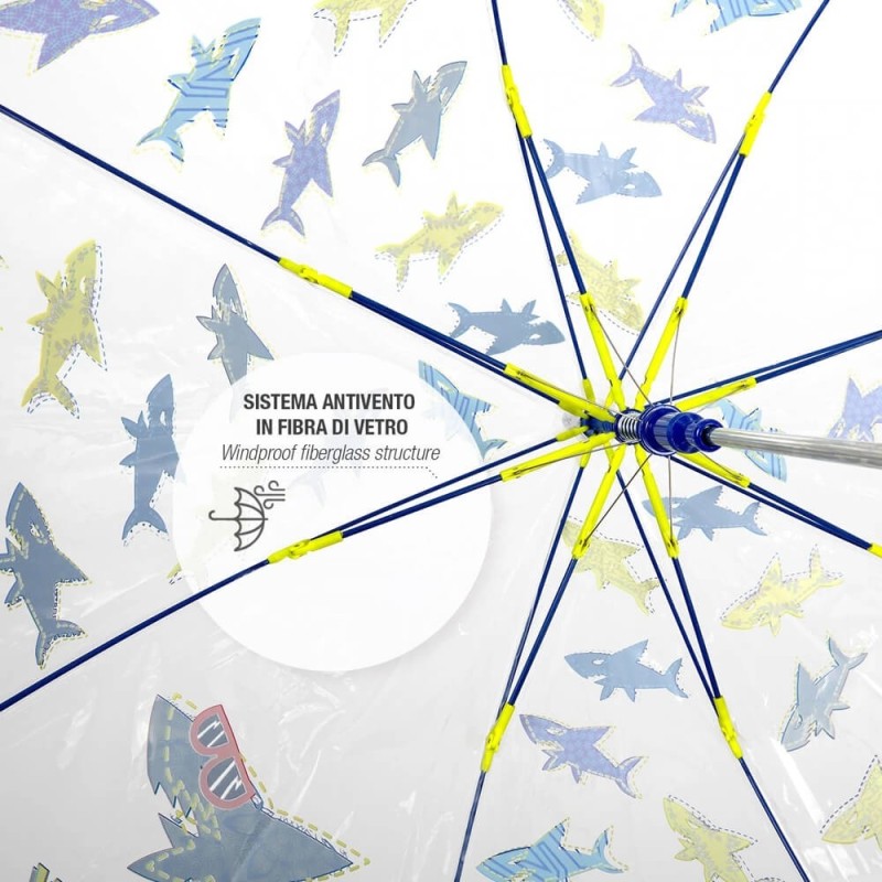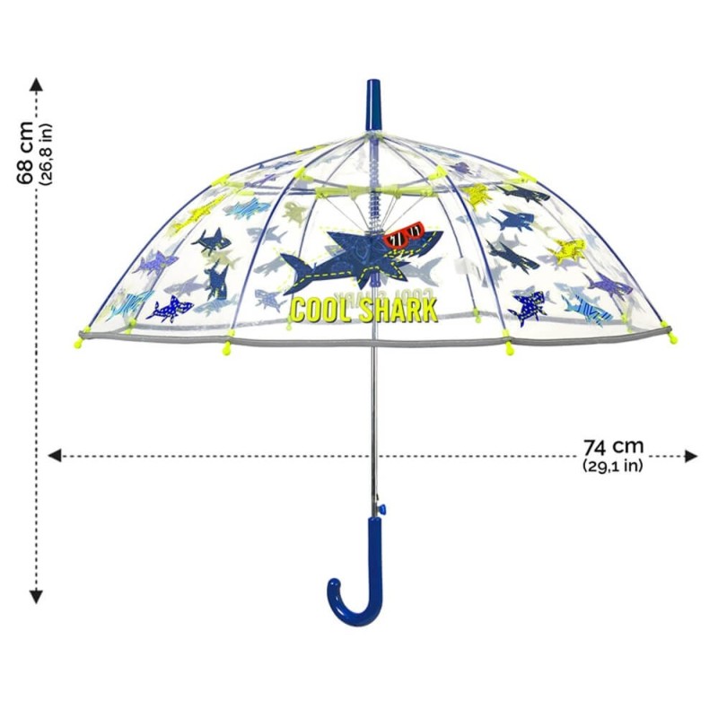 Przezroczysta, bezpieczna, wytrzymała, automatyczna parasolka dziecięca włoskiej firmy PERLETTI.