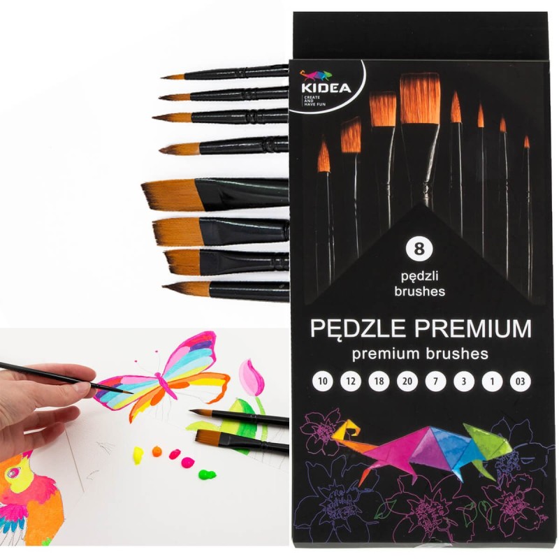 ✅Zestaw 8 pędzli premium Kidea to profesjonalny wybór dla każdego artysty, który pragnie tworzyć wyjątkowe dzieła, niezależnie od poziomu zaawansowania.