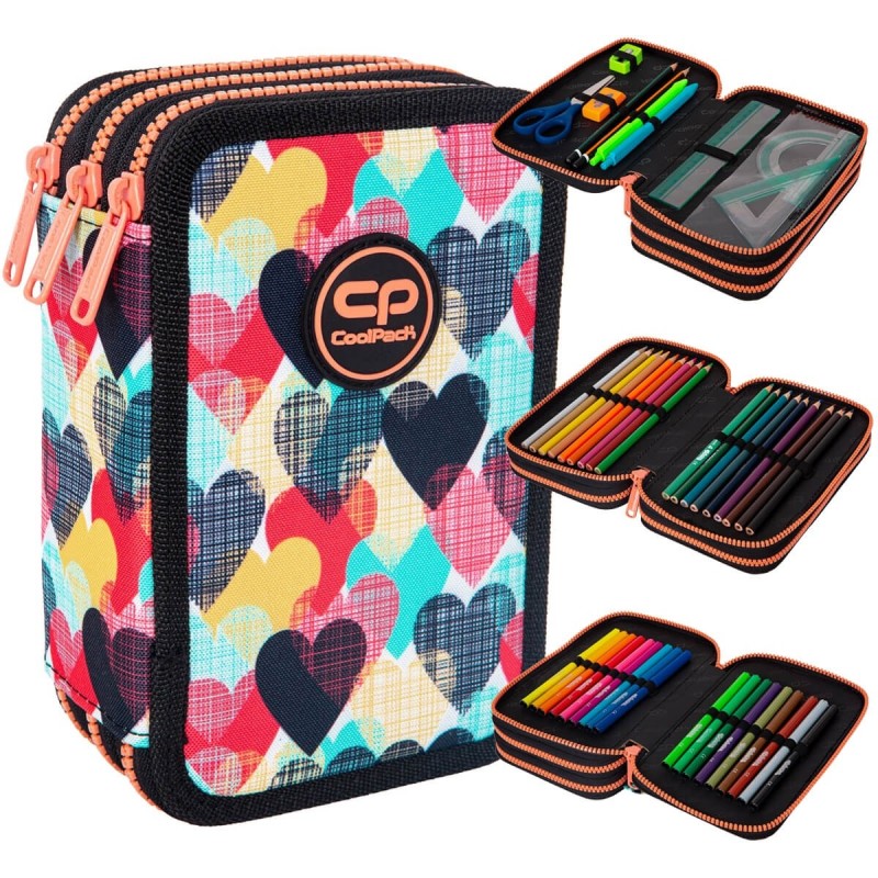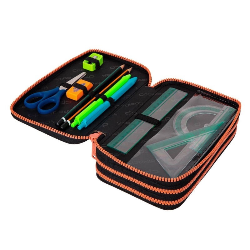 Piórnik potrójny z wyposażeniem marki Coolpack. Wykonany z wysokiej jakości materiałów. Piórnik posiada pełne wyposażenie.