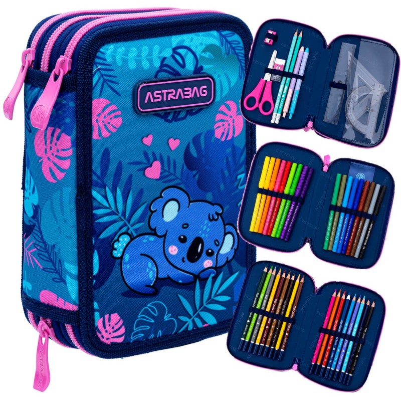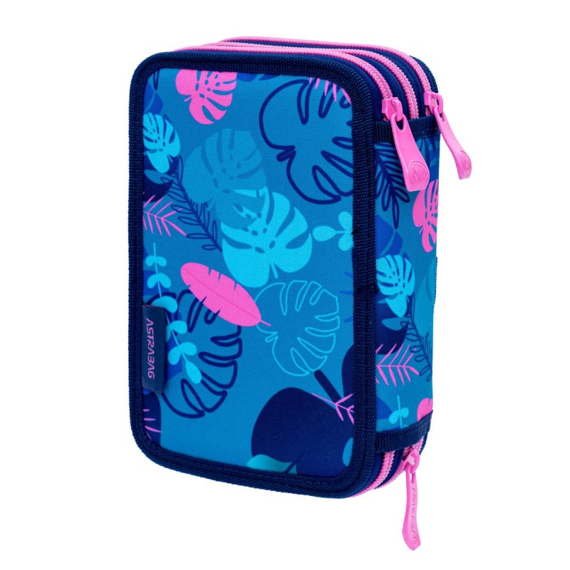 Piórnik posiada zamki błyskawiczne z wygodnymi zakończeniami. Komory piórnika posiadają gumowe uchwyty na akcesoria szkolne - wewnątrz pełne wyposażenie marki Astra