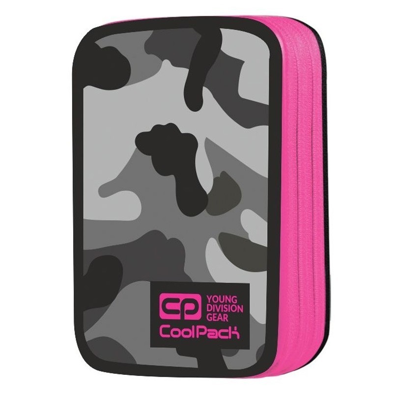 Dwukomorowy piórnik Coolpack z serii Jumper w kolorowy, modny wzór. Wyposażony w wysokiej jakości zamki błyskawiczne z szerokimi uchwytami. Komory posiadają uchwyty na przybory szkolne - wewnątrz piórnika pełne wyposażenie marki Colorino.