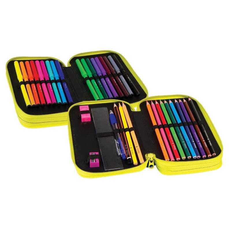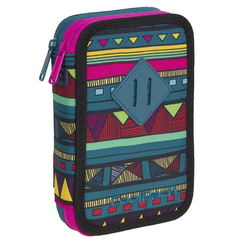Dwukomorowy piórnik Coolpack z serii Jumper w kolorowy, modny wzór. Wyposażony w wysokiej jakości zamki błyskawiczne z szerokimi uchwytami. Komory posiadają uchwyty na przybory szkolne - wewnątrz piórnika pełne wyposażenie marki Colorino.
