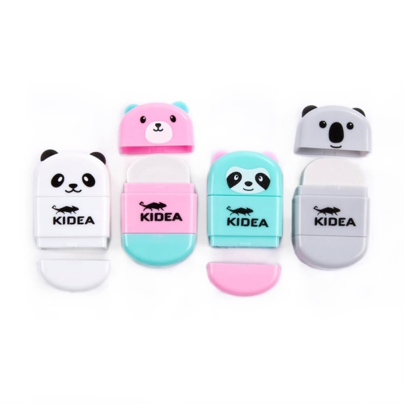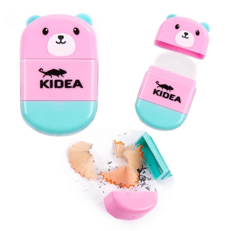 2 w 1 temperówka z pojemnikiem i gumka z zatyczką Kidea miś różowy