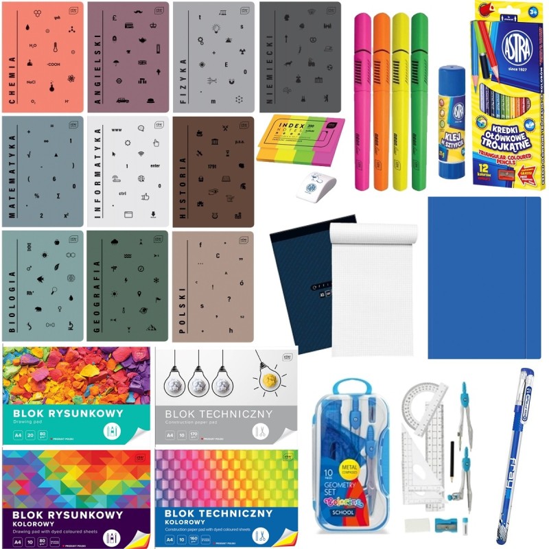WYPRAWKA SZKOLNA XXL INTERDRUK SKŁADAJĄCA SIĘ Z 32 ELEMENTÓW W TYM 10 ZESZYTÓW PRZEDMIOTOWYCH