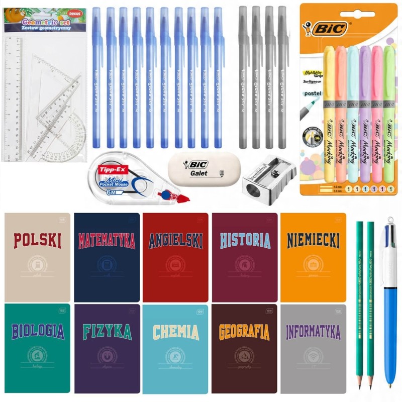 MEGA zestaw wyprawka szkolna do klas 7-8 i liceum, BIC, XXL 40 elementów w tym 10 zeszytów przedmiotowych