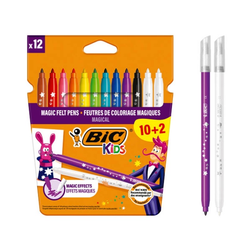 1x wymazywalne flamastry BIC KIDS MAGIC - 10 różnych kolorów + 2 wymazywacze
