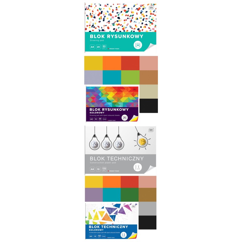 - 1x blok techniczny kolorowy Interdruk A4, 160g, 10 arkuszy