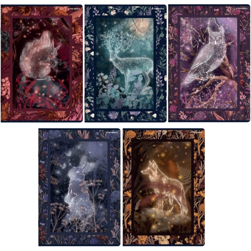 Kolekcja 5 unikalnych zeszytów Top 2000 Fairytale z ilustracjami niezwykłych leśnych stworzeń! Każdy zeszyt to zaproszenie do fascynującej podróży, gdzie spotkasz dumnego jelenia, czujnego królika i inne magiczne zwierzęta. Te niezwykłe okładki sprawią, że notowanie stanie się przyjemnością, a jednocześnie przeniosą Cię do baśniowego świata, pełnego tajemnic i czarów. Jeszcze więcej magicznego wyrazu dodaje okładkom aksamitnie miękka w dotyku folia soft touch i nałożony wybiórczo błyszczący lakier. Daj się zainspirować magią natury i wprowadź trochę czarodziejskiego uroku do swojego codziennego pisania!